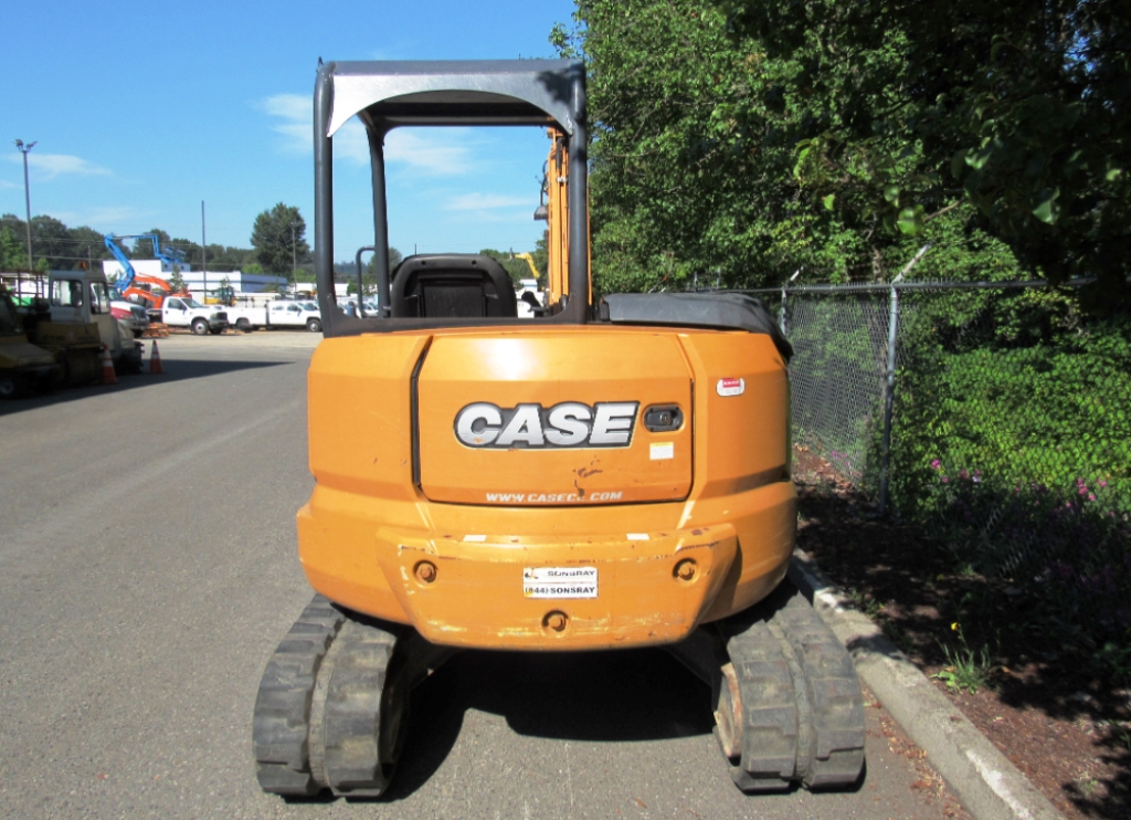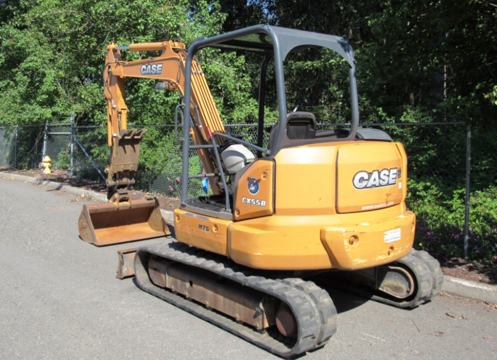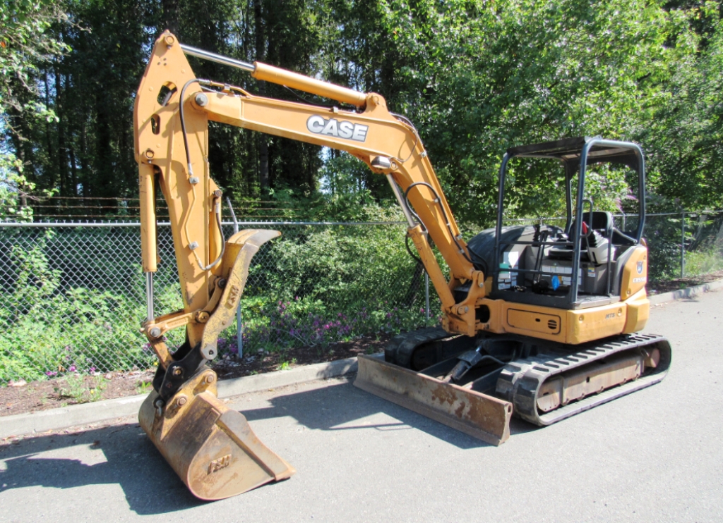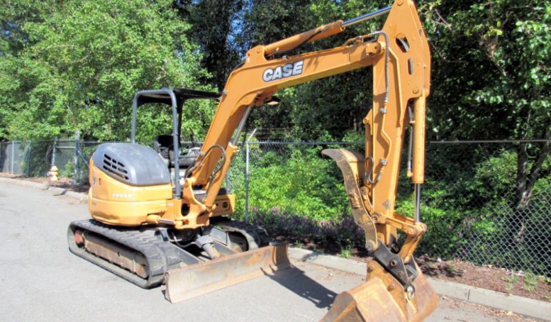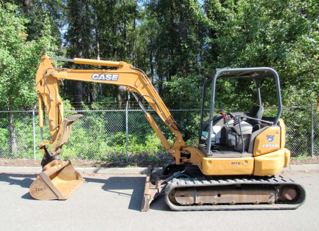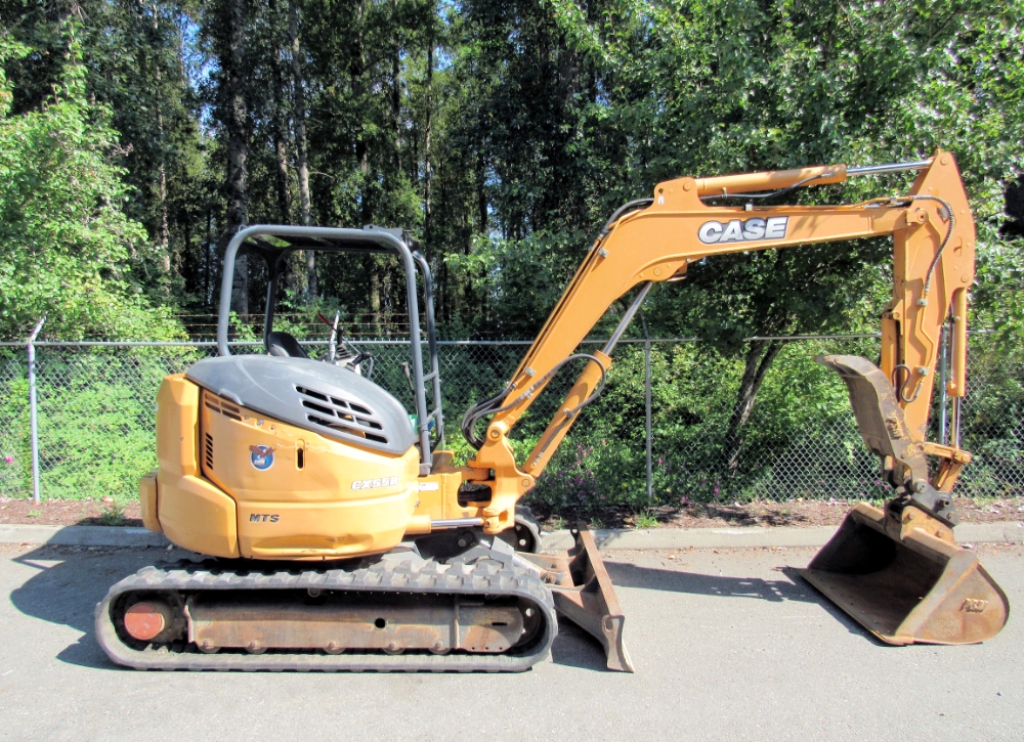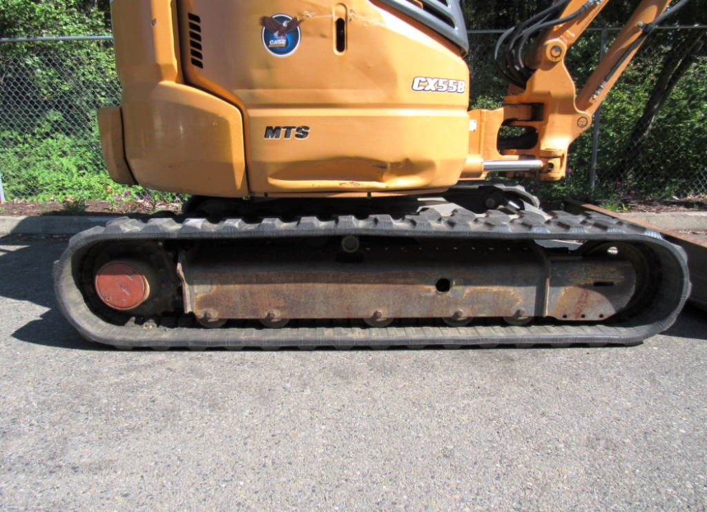 2016 Case CX55B Mini Excavator Hydraulic Thumb Yanmar Aux Hyd Q/C. Rubber Tracks, Swing Boom, Selectable Excavator Pattern Controls. Two-Speed Travel, Work Lights, PSM Hydraulic Thumb, 77″ Backfill Blade, Manual Quick Coupler