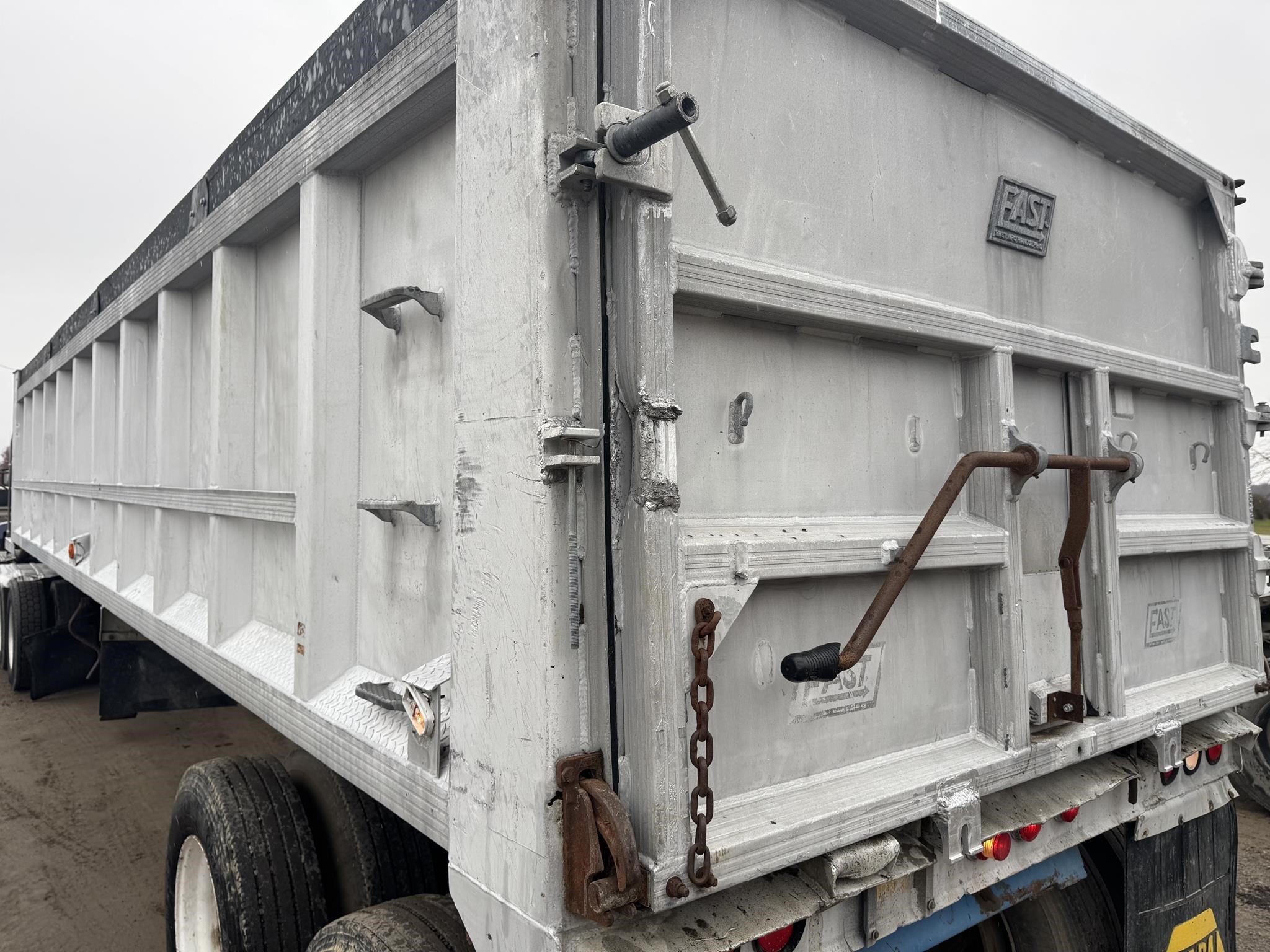 1984 East Dump Trailer – 33 ft steel frame, 31 ft aluminum box, 96 inch width, 64 inch sides, spring-ride suspension, and steel Budd wheels. Air tailgate has been unhooked. Can assist with delivery arrangements. We are required to collect sales tax on all vehicles/trailers sold to residents of: Ohio, Arizona, California, Florida, Indiana, Massachusetts, Michigan, South Carolina, and Washington unless you provide valid proof of sales tax exemption.