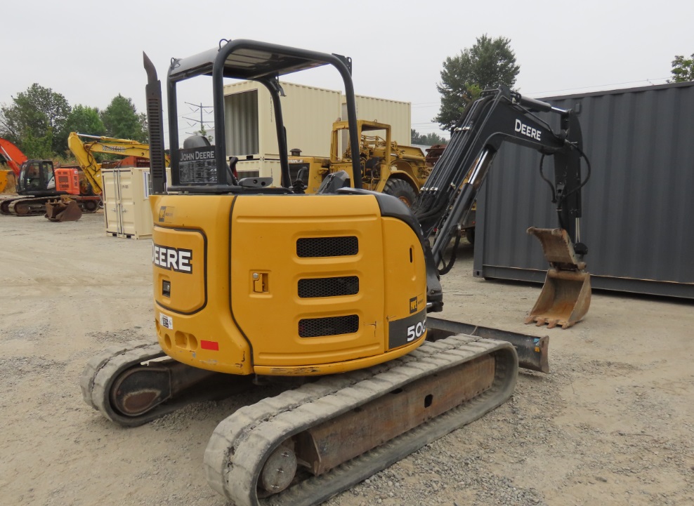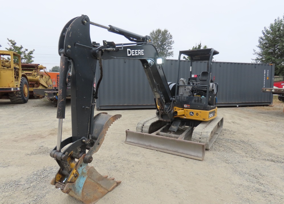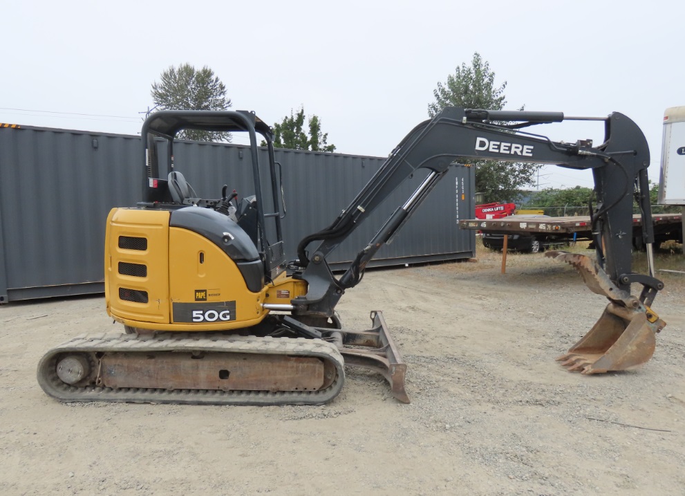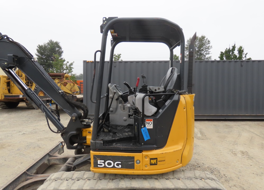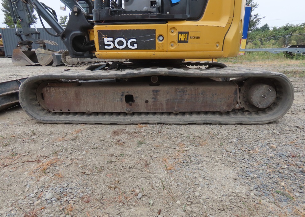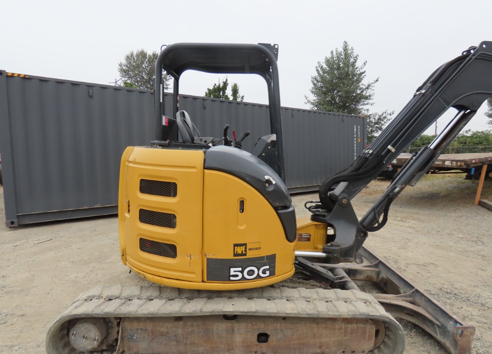 2016 John Deere 50G Hydraulic Mini Excavator Hyd Thumb Q/C Blade 2-Speed. Open ROPS, Hydraulic Thumb, 2-Speed Travel, Work Lights, Operator Horn, Manual Quick Coupler, Auto Idle, 79″ Backfill Blade